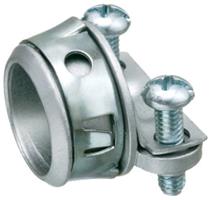 Zinc clamp connector for 3/8 Inch trade nonmetallic sheathed cablle ; mounts in 1/2 Inch knockouts and uses dual screws to secure NM cable, supplied with locknut for box connection.
