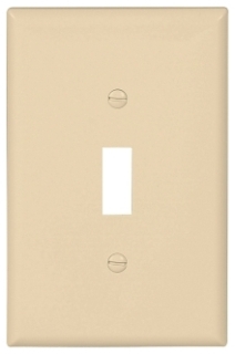 Eaton 1-gang ivory toggle wallplate, standard size thermoplastic, includes matching screws for general toggle switch installations.