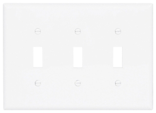 Eaton PJ3W 3-gang white toggle wallplate, nylon, for three standard toggle switches, standard size, screw mounted, suitable for multi-gang residential or commercial switch boxes.