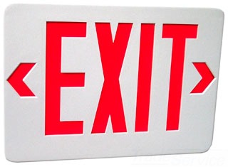 White Exit Sign - LED,120 Volt with Back up Letters RED