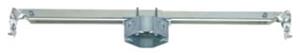 Shallow ceiling box and adjustable brace assembly rated for fan or fixture support; spans between joists and includes integral box for branch circuit terminations.