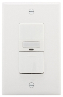Eaton OS310U-W occupancy sensor wall switch, single-pole or 3-way, 120/277 Volt AC up to 1000 Watt lighting load, white decorator face, adjustable time-delay and sensitivity.