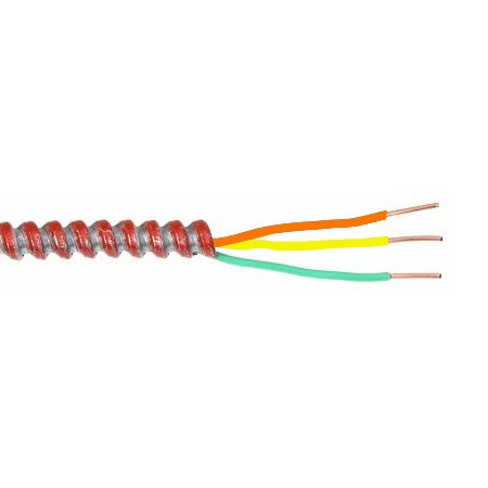 Fire Alarm MC steel cable with two 14 AWG copper conductors, orange and yellow, 600 Volt rated, supplied on Reel.