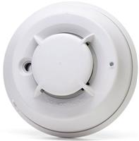 Low-profile 2-wire photoelectric smoke detector with base for conventional fire zones.