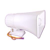 High-output 30 Watt 12V horn-style siren for interior or sheltered outdoor use, providing strong audible alarm notification.