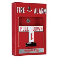 Addressable dual-action fire pull station with key reset for Firewolf systems; metal housing and programmable address.