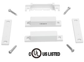 Slim surface-mount door/window contact kit with spacers and covers; quick-connect terminals and ~0.9" gap provide clean, reliable perimeter protection on wood or metal frames. (secpral.ro)