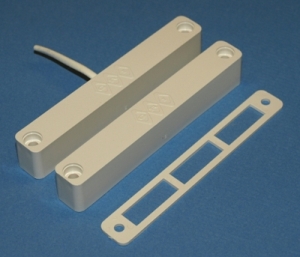 Large gap surface-mount magnetic contact set with adjustable magnet, suited to gates, roll-up doors and misaligned openings.