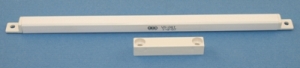 White vane-style mechanical switch with terminals for sensing overhead or sliding door movement in intrusion or automation applications.