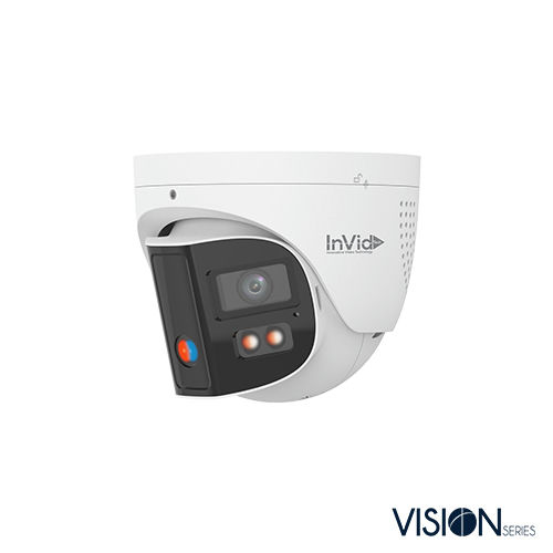 8 Megapixel IP Plug & Play, Outdoor Turret, 180 Panoramic View with 2 Fixed Lenses, up to 98’ IR Range, True WDR, White Light up to 98’, Red/Blue Flashing Deterrent Light and/or Siren, Built-in Mic/Speaker, SD Card Slot, 12VDC/PoE